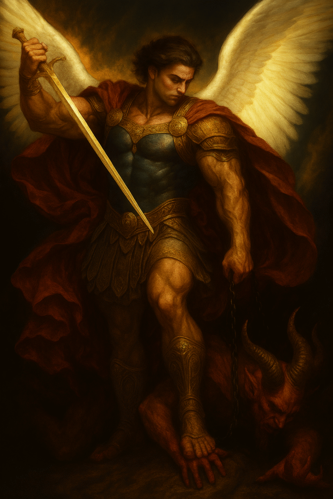 Santo Mikael dihadirkan sebagai simbol kekuatan Allah yang berjuang melawan kuasa setan dan segala bentuk godaan.