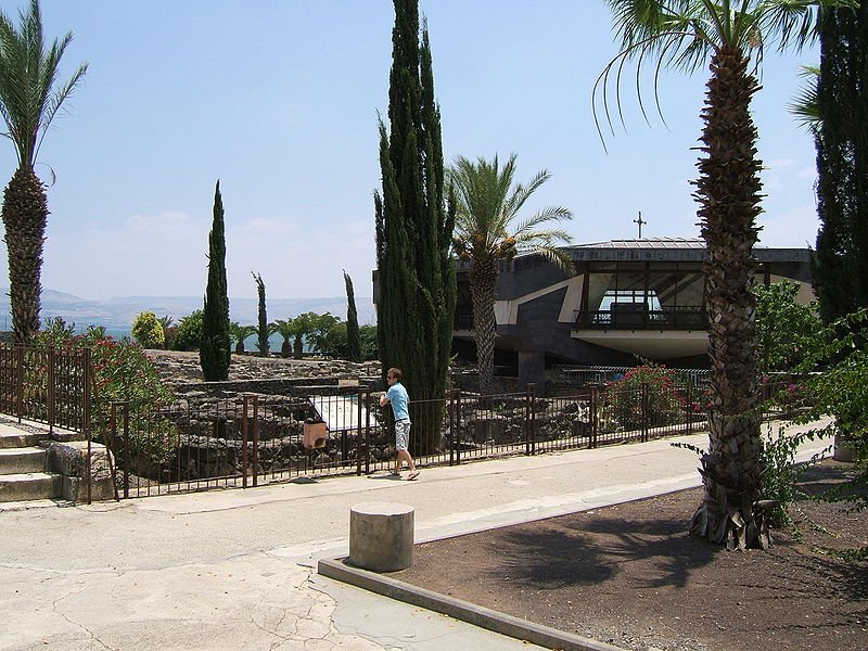 Gereja Santo Petrus di Kapernaum, yang terletak di sisi utara Danau Galilea; sebuah gereja Fransiskan dibangun di atas lokasi tradisional yang diyakini sebagai rumah Rasul Petrus.